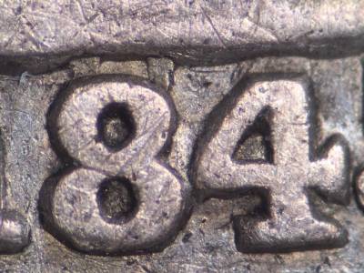 84 is repunched to the north. The top of the first punch goes into the rock above the date.