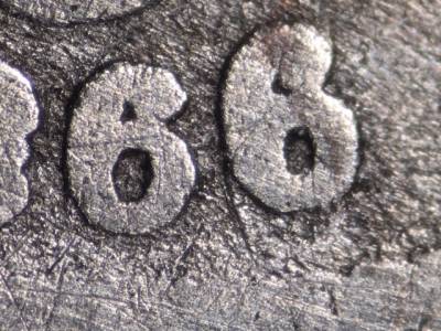 Die Markers: Obverse: Curved die crack in the bottom V of the shield. Reverse: Bottom of the E in UNITED is filled.