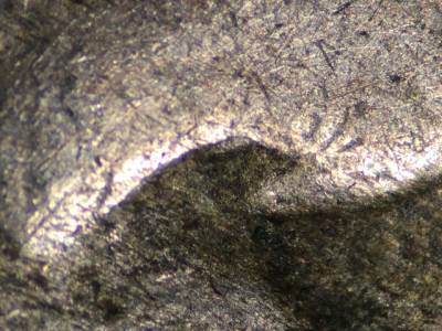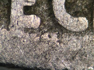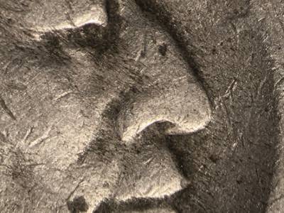 Doubling to the south in the nostril. *Wexler determined example pictured to be too worn to attribute. Higher grade example needed.