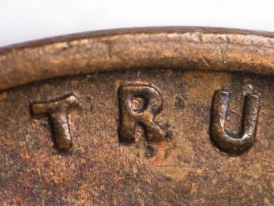 Obverse: Bottom of the O in GOD is broken. Die gouge runs from the top of the D in GOD to the rim. Die scratch in the upper portion of the E in WE. Short die scratches through the U in TRUST.