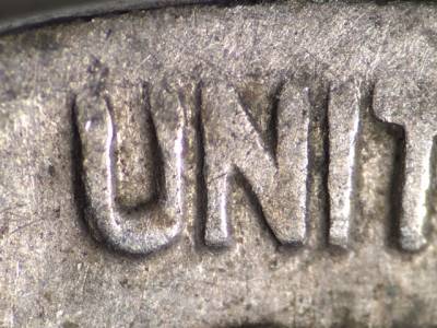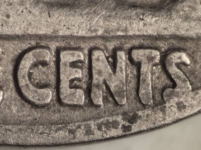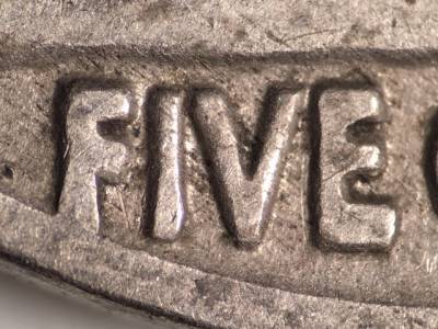 Extreme Class VI extra thickness on UNITED STATES OF AMERICA, E PLURIBUS UNUM, and FIVE CENTS. Higher grade examples will show a Class II quadruple spread on the lettering.