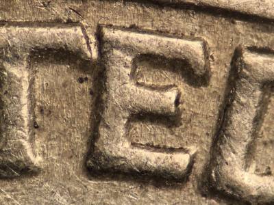 Obverse: Die scratch runs east from the top of the Y in LIBERTY.