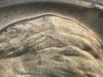 NW/SE die crack through the hair. Two thin die scratches extend SW from the T in LIBERTY.