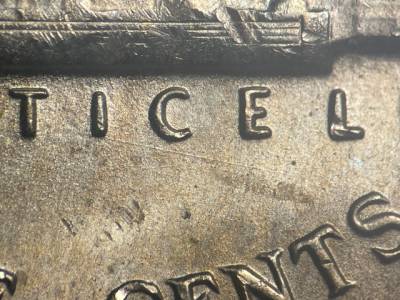 Strong NW/SE die scratch from the I in MONTICELLO to the S in CENTS. Many short die scratches extend NE from the right side of the building.