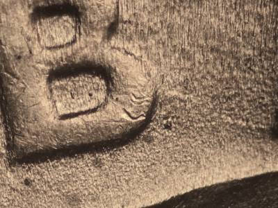 Reverse: Die crack runs down the left wing. Feeder finger damage goes through the top of the right wing. Die scratch above the IBUS in PLURIBUS.