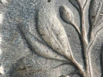 E/W die crack across the E in ONE and to the D in DIME. Short N/S die crack on the top leaf of the left olive leaf cluster. N/S die scratches through the L in PLURIBUS. Short die gouges on the right side of the D and I in DIME.