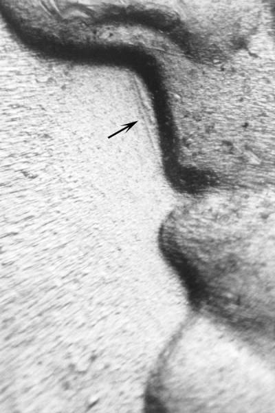 Two die scratches between the area of the upper lip and the nose. Reverse: