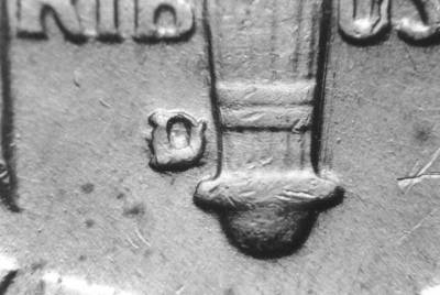 Die scratches south from bottom of the B in PLURIBUS. Short die scratch in the field below lower right of the R in PLURIBUS.