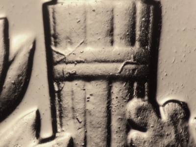Reverse: Unusual curving die gouges on the upper torch. Many strong die gouges in the upper olive leaves.