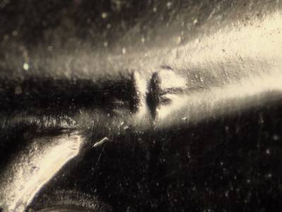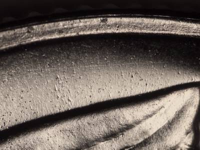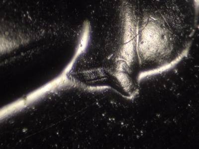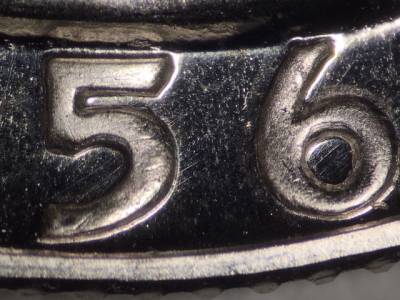 Obverse: Three short parallel die scratches in the queue.