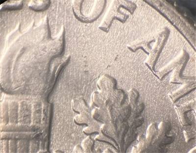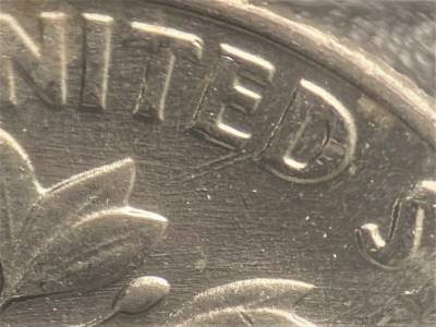 Numerous mostly north to south die scratches throughout the reverse. Two parallel die scratches under ED in UNITED. Die scratch running through top of ICA in AMERICA. Die scratch running through middle of M in DIME.