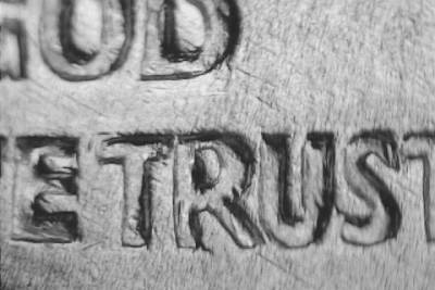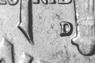 Straight G in GOD. Die scratch SE from the bottom of the right leg in the R of TRUST and through the D in GOD. Die chip at the lower back of the nose.