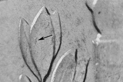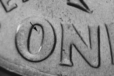Short N/S die scratch in side the upper area of the O in ONE. Die chip on the upper olive leaf. Heavy N/S die scratch below the T in UNITED.