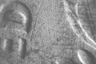 Long die scratch beginning at the lower E of UNITED and running east under the D of UNITED. Die scratch from the first S in STATES to the left upper leaves. Die scratches from the U and T of UNITED to the left lower leaves.