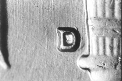 Stage A: Die scratch south from left center of the 9 in the date. Die scratches south from the designer’s initials.