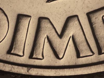 Reverse: Die gouge on the top of the E in DIME.