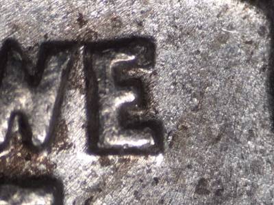 Obverse: Die gouge to the right of the bottom of the E in WE.