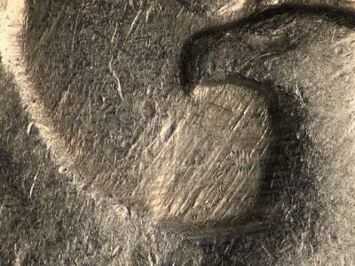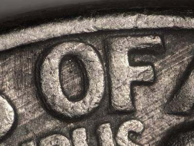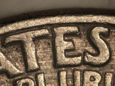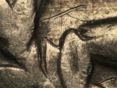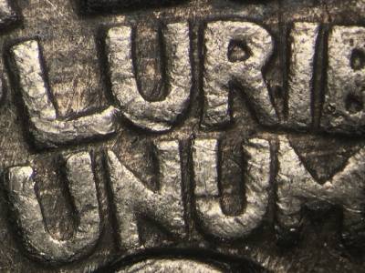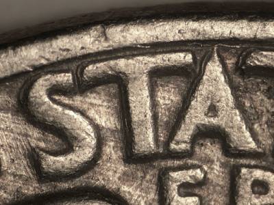Reverse: Remnants of a die clash below the beak and above the arrow tips. Some SW-NE die scratches through E PLURIBUS UNUM.
