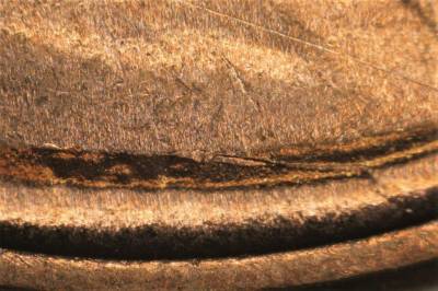 Comments: I would like to see an example of this die in earlier die state to determine if the area of doubling to the southeast is a true RPM or a well placed die gouge. The examined coin was in mid to late die state.