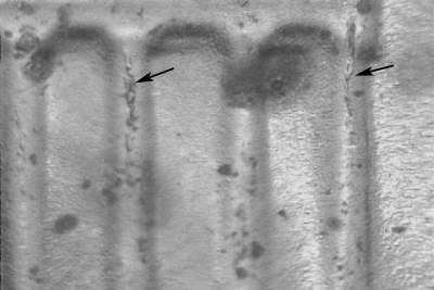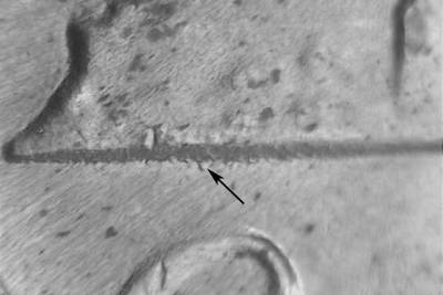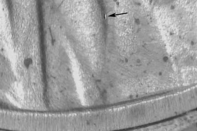 Obverse: Stage A: Die gouge on the lapel crease about one-third up from the bottom. Stage B: Stage A marker still present.