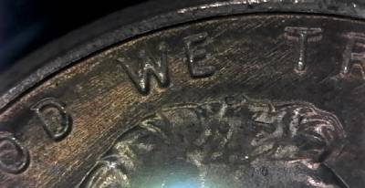 Obverse: Strong die scratch from the upper right of the Y in LIBERTY to the back of the neck. Strong N-S die scratch from neck to the area to the left of the bowtie. Numerous light SW-NE die scratches throughout the obverse.