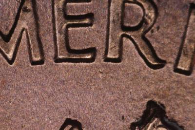 Stage B: Die gouge above O in ONE still present. Die gouge south centered between ER of AMERICA very weak. Multiple die gouges under second S in STATES. N/S die scratch inside the upper area of the O in OF. Die scratch south center below the lower horizontal bar of the F in OF. Light die crack left memorial base. Die gouge right of second A in AMERICA. Die gouges right of T in CENT.