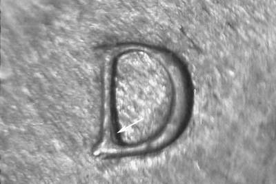 Stage D: Die chip above 9 is abraded away. Die chip in 9 still present. Die dot above right side of mint mark still present.