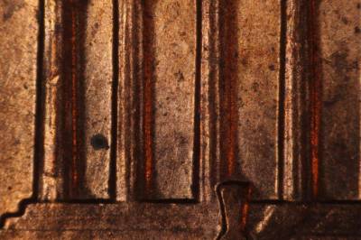 Heavy die scratches running northwest through E PLURIBUS UNUM and STATES. Die gouge right of A in STATES. Criss crossing die scratches through TED in UNITED. Die gouge memorial bay 2. NNE die scratches in bay 1-3. Die scratch running northwest from under C in CENT. Die gouge inside lower memorial bay 9. Die gouge under memorial bay 9.