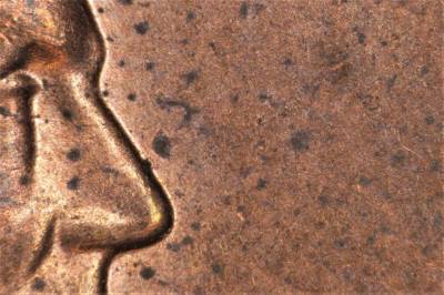 Die gouge above the T in LIBERTY. Light die gouge above jacket fold directly above V in VDB. Die gouge under left side of N in IN. Multiple die gouges near rim above IN GOD WE. Die gouge in vest at level of base of 9. Die gouge in field at level of Lincoln’s eye. Die gouge right of upper T in TRUST.