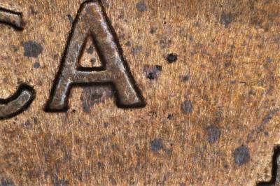 Obverse: Die scratches run north from LIBE in LIBERTY. Die gouges above and under right side of B in LIBERTY. Die gouge above left side of T in LIBERTY.