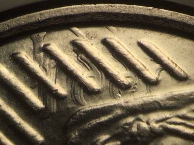 Obverse: At least ten die clash marks in the diagonal lines at 12:00, one being strongly off-centered and touching the rim.