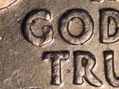 Die Markers: Obverse: Many die scratches through the GO in GOD and the TR in TRUST. Reverse: Small die gouge inside the upper right branches.