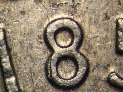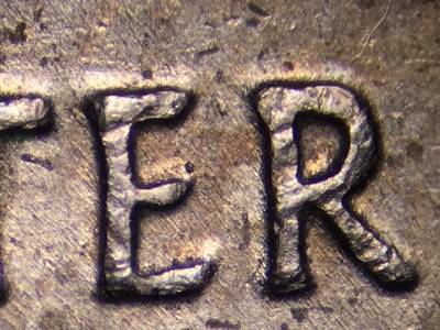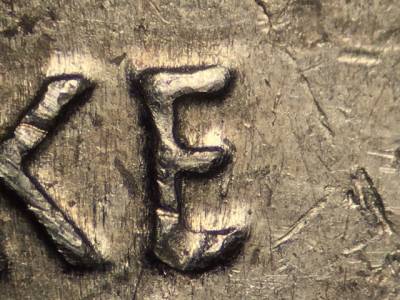 Reverse: Die gouge to the left of the upper portion of the 8 in 1859. Die gouge between the tops of the E and R in CRATER. Die gouge inside the lower portion of the E in LAKE. Die gouge above the right side of the second U in UNUM.