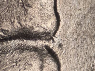 Doubling to the south below the third branch of the right tree.