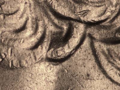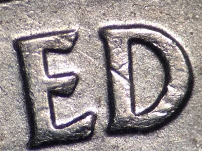 Reverse: Die gouge to the left of the bottom of the second I in VIRGINIA.
