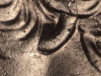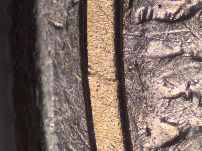 Reverse: Numerous die chips and pre-die break depressions on the mountains. Die gouge to the right of the C in COLORADO. Die gouge above the second U in UNUM. Die damage near the rim at about 9 o'clock.