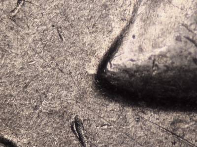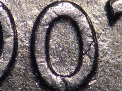 Obverse: Die chip on the designers initials JF. Short die crack extends from the front tip of the bust. Die gouge to the right of the N in IN.
