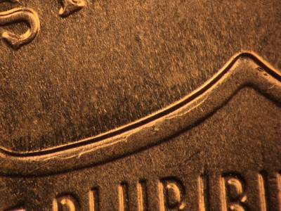 Reverse: Die crack runs across the top left of the shield. Very small die gouge below the I in AMERICA.