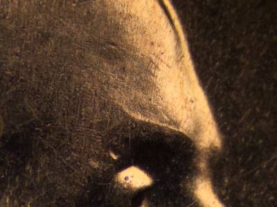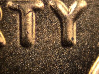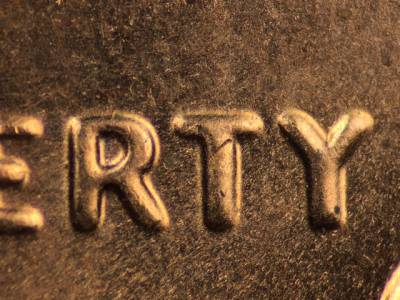 Obverse: Die crack runs across the eyebrow. Very small die chip on the middle of the vertical bar of the T in LIBERTY. Very small die gouge above the I in LIBERTY. Very small die gouge immediately below the Y in LIBERTY.