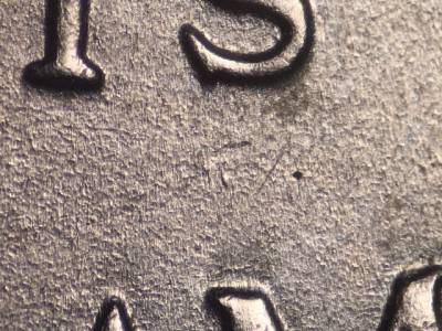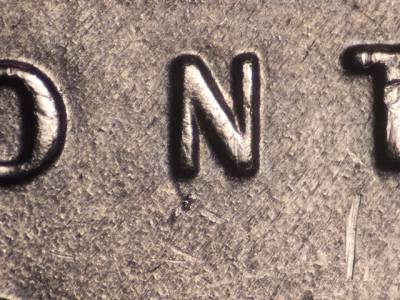 Obverse: Die gouge touches the diagonal bar of the N in IN. Die gouge between the R and U in TRUST.