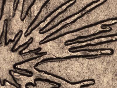 Doubling to the south on the right side of both firework bursts and below the bottom stripe of the flag.