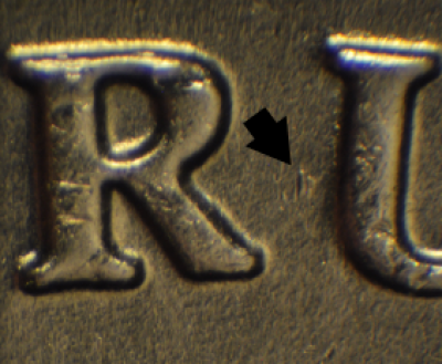 Die Markers: Obverse: Die gouge between the R and U in TRUST. Reverse: Die scratches run through the ICA in AMERICA.