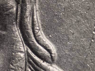 Obverse: Die chip inside the E in LIBERTY. Die gouge in the field to the right of the eye.