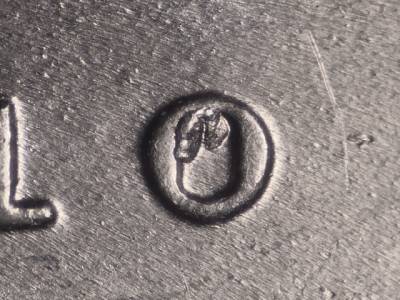 Reverse: Die chip inside the last O in MONTICELLO. Die crack runs east from the top right of the building. Die scratch runs from the right side of the building to the rim below the die crack. Die gouge below the left side of the M in UNUM.