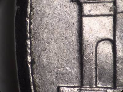 Reverse: Die gouge below the left side of the last U in PLURIBUS. Many SW-NE die scratches to the left of the building. Die gouge between the first O in MONTICELLO and the F in FIVE.