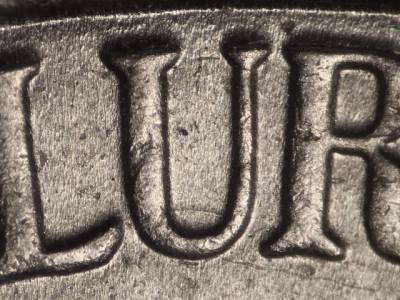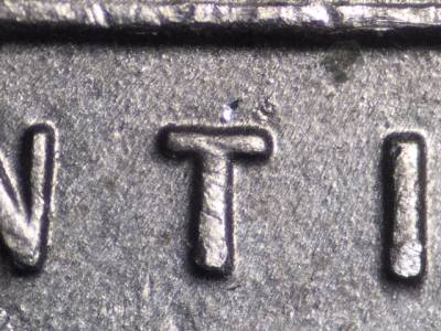 Obverse: Die gouge above the hair far to the left of the I in IN.