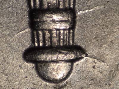 Reverse: Many die cracks on the bottom of the torch and in the olive leaves. Die gouge between the N and E in ONE.
