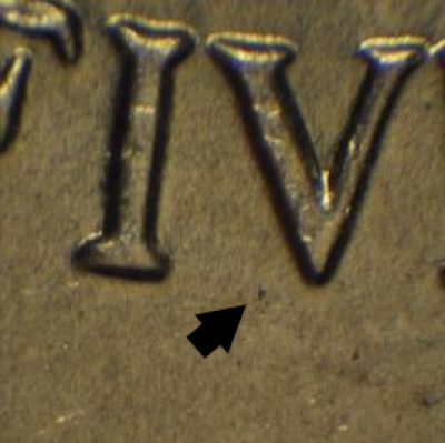 Die Markers: Obverse: None known. Reverse: Die gouge between the T and S in CENTS. Die gouge between the I and V in FIVE.