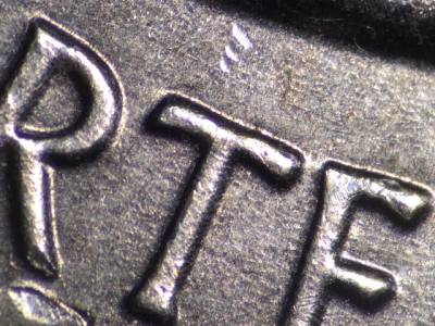 Obverse: Stage A: E-W die scratch above the T in QUARTER. Stage B: WDDR-033. It is not known whether or not Stage A markers are still present. Two die chips above the designers initials JF.