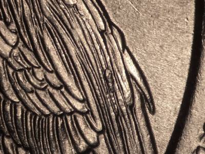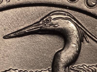 Reverse: Numerous die chips on the great blue heron. Die chip on the lower back of the great blue heron. The top of the B in BOMBAY is broken.
